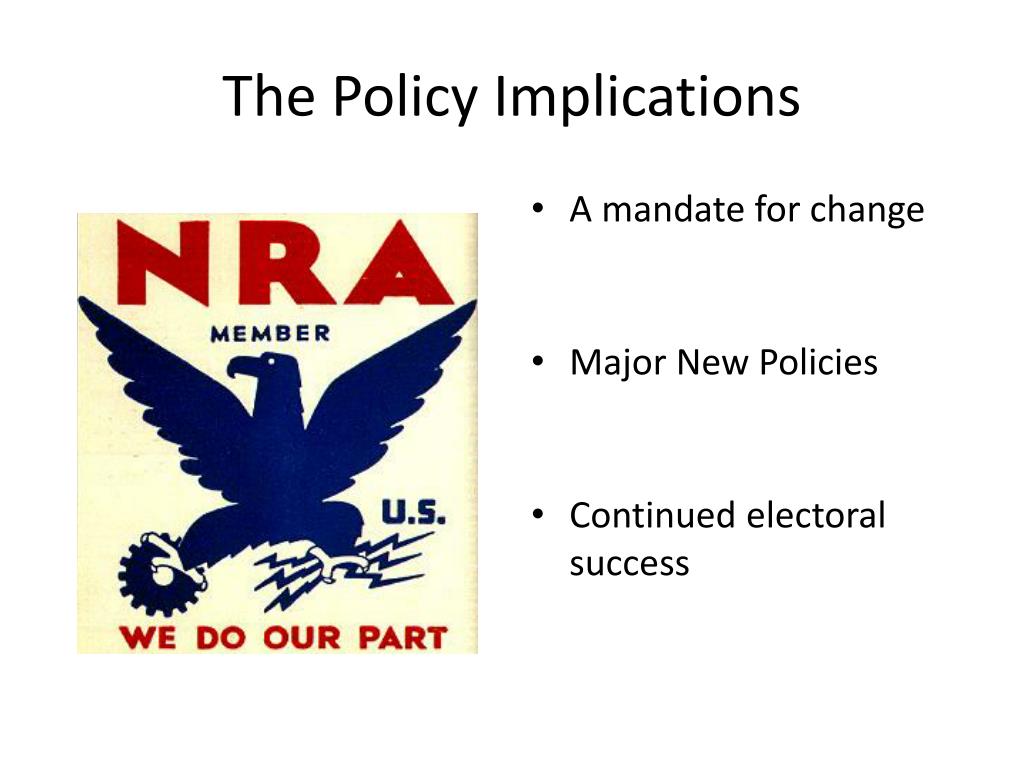 The Policy Implications • A mandate for change • Major New Policies • Continued electoral success