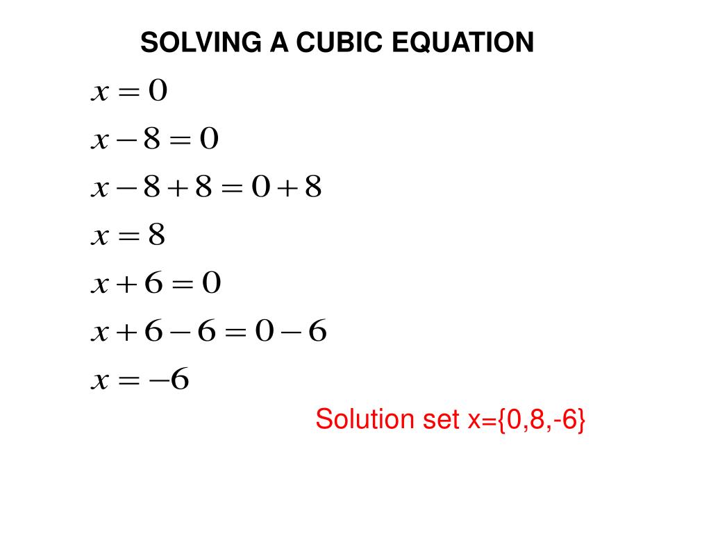 SOLVING A CUBIC EQUATION Solution set x={0,8,-6}