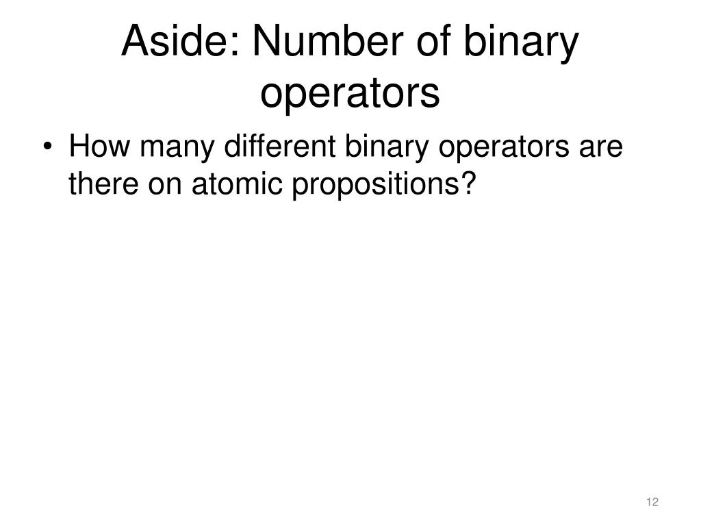 Aside: Number of binary operators • How many different binary operators are there on atomic propositions?