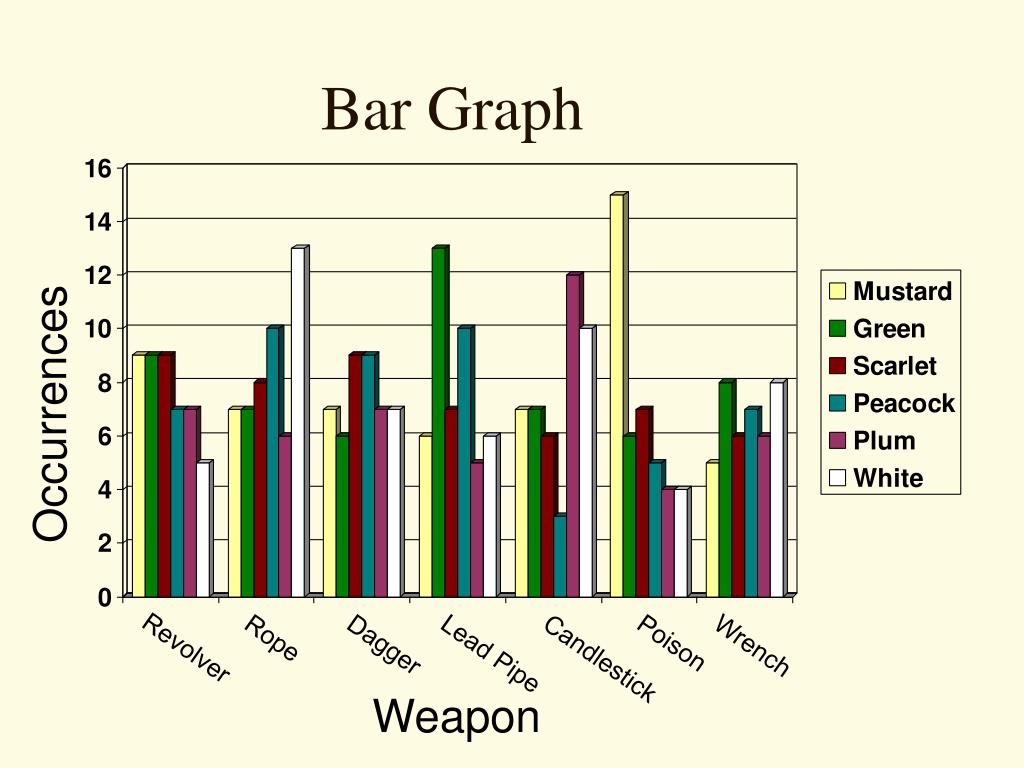 Bar Graph Occurrences Revolver Rope Dagger Lead Pipe Candlestick Poison Wrench Weapon