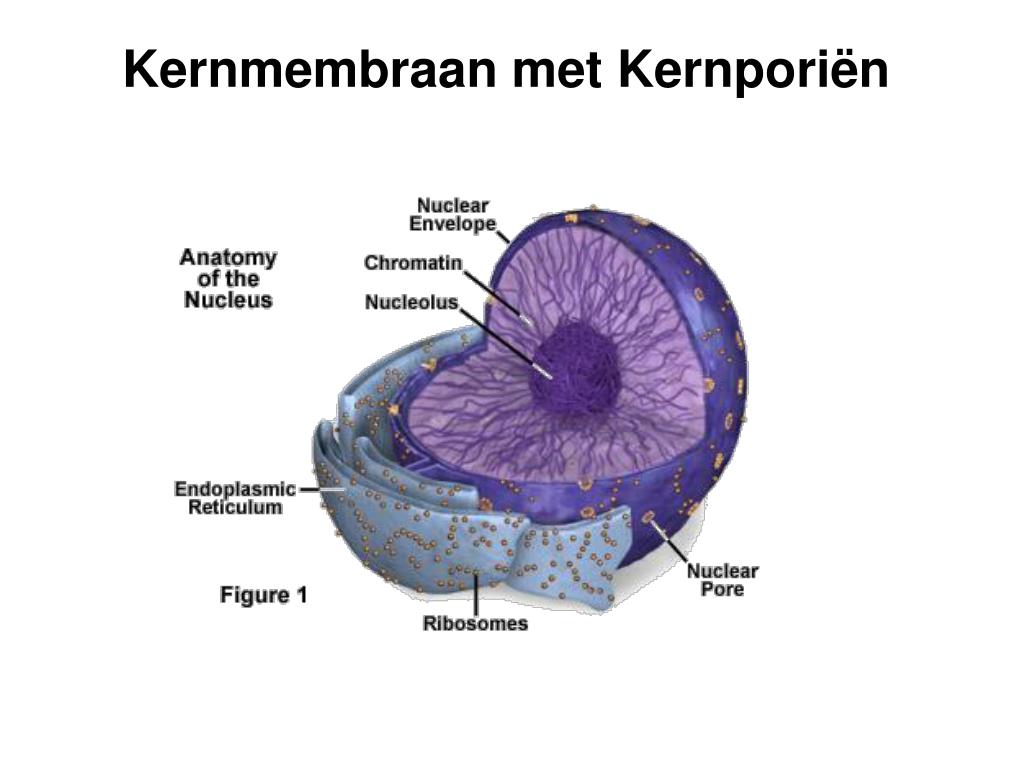 De celkern • Kern: erfelijke materiaal • Kernplasma: in kern. Omgeven door kernmembraan • Kernporiën: uitwisseling stoffen tussen kern en cytosol. • Nucleosomen: eiwitbolletjes: is DNA om gewonden