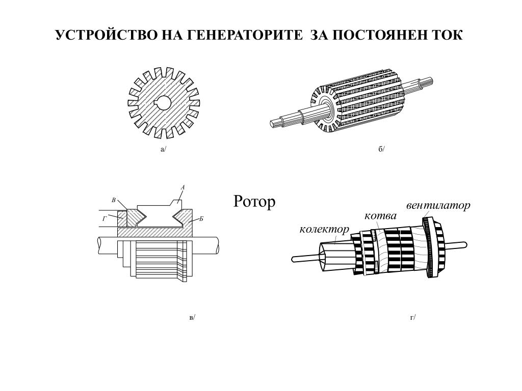 УСТРОЙСТВО НА ГЕНЕРАТОРИТЕ ЗА ПОСТОЯНЕН ТОК а/ б/ Ротор в/ г/
