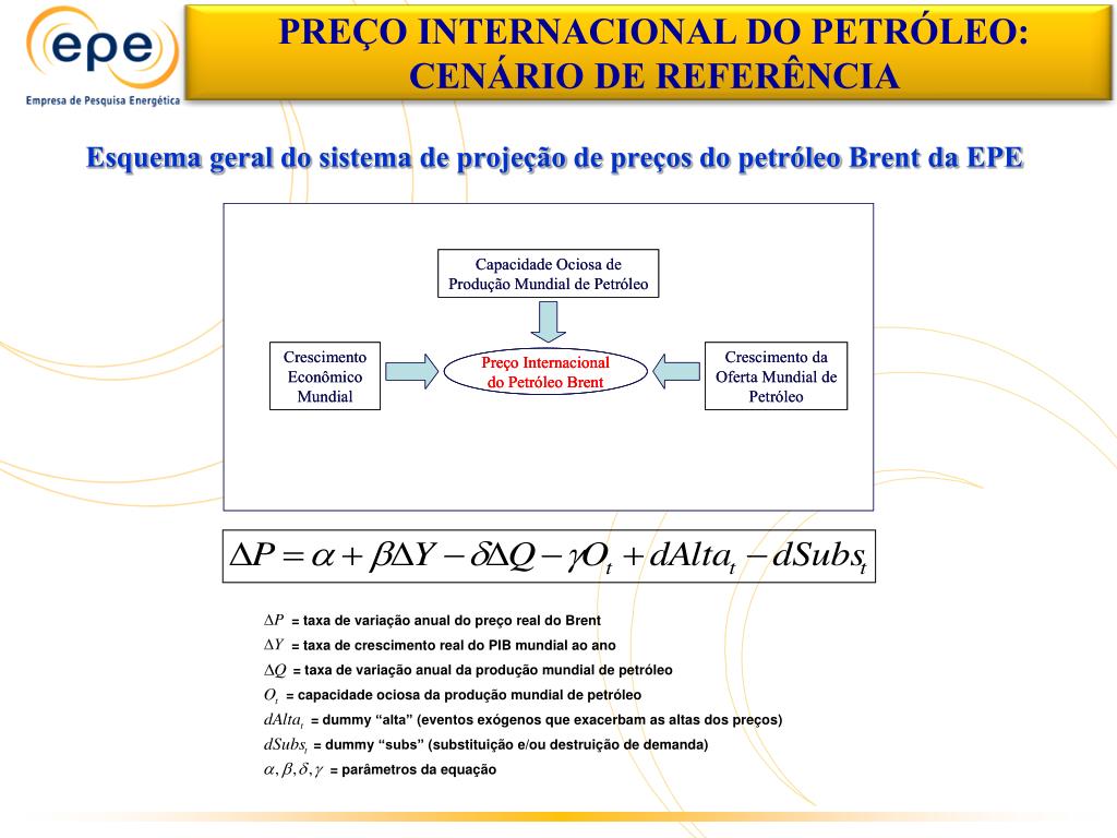Esquema geral do sistema de projeção de preços do petróleo Brent da EPE PREÇO INTERNACIONAL DO PETRÓLEO: CENÁRIO DE REFERÊNCIA