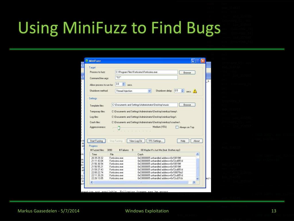 Using MiniFuzz to Find Bugs Windows Exploitation