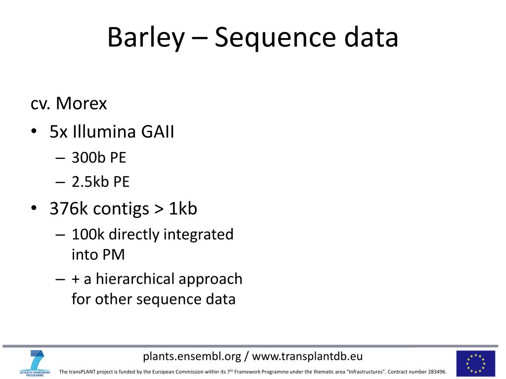 Dan Bolser, EMBL-EBI. trans-National Infrastructure for Plant Genomic Science. Triticeae in Ensembl Plants Poznań , 27th-28th June 2013. Introduction. Triticeae crops. Wheat. Barley Hordeum vulgare A n important cereal and model for adaption . Diploid 7 chromosomes 5.3Gb Genome