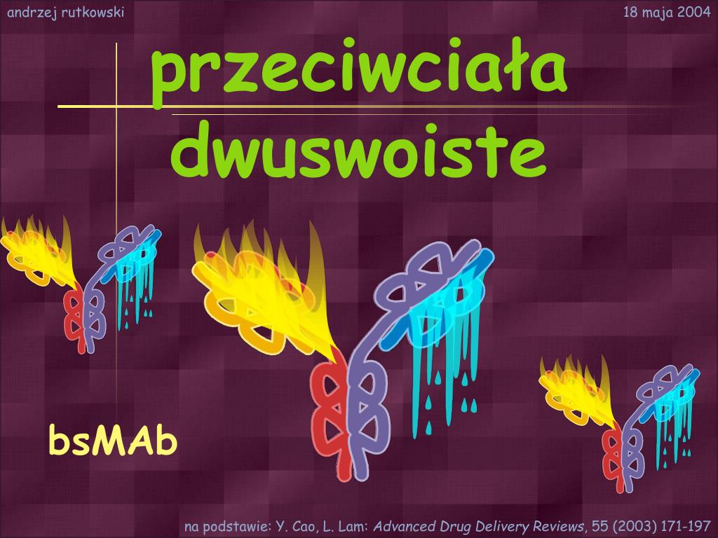 andrzej rutkowski 18 maja 2004 przeciwciała dwuswoiste bsMAb na podstawie: Y. Cao, L. Lam: Advanced Drug Delivery Reviews, 55 (2003) 171-197