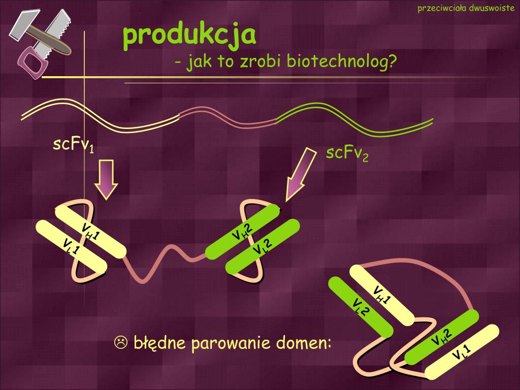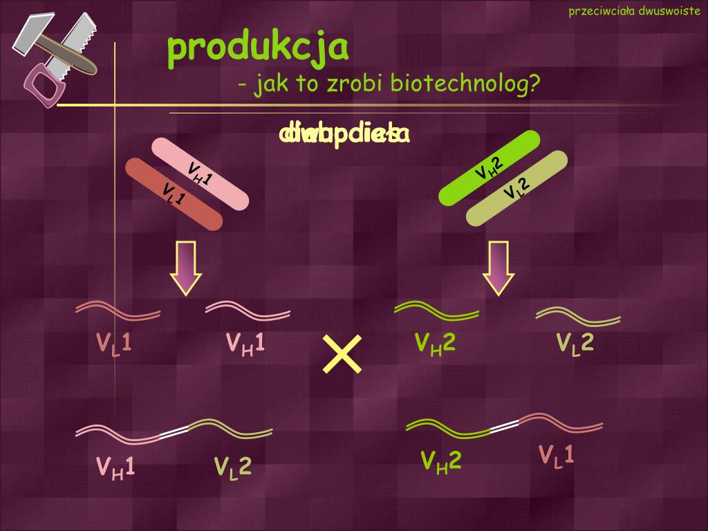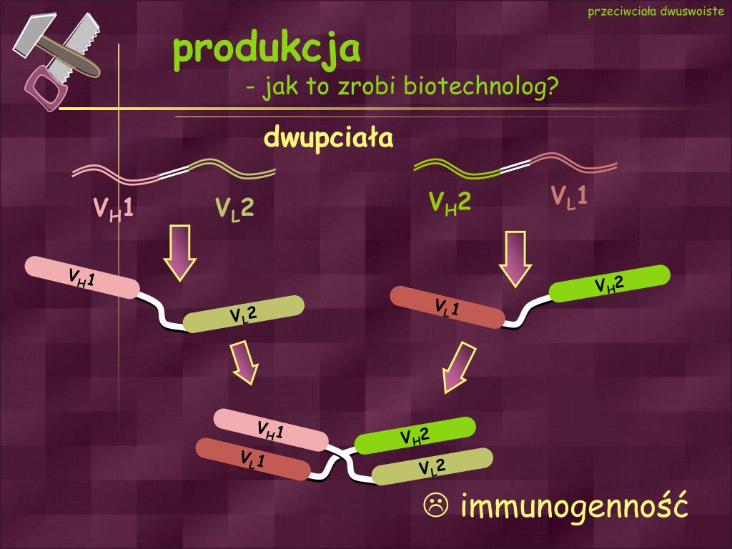 przeciwciała dwuswoiste VH1 VL1 VH2 VL2 VL1 VH1 VH2 VL2 VL1 VH2 VH1 VL2 produkcja - jak to zrobi biotechnolog? diabodies dwupciała
