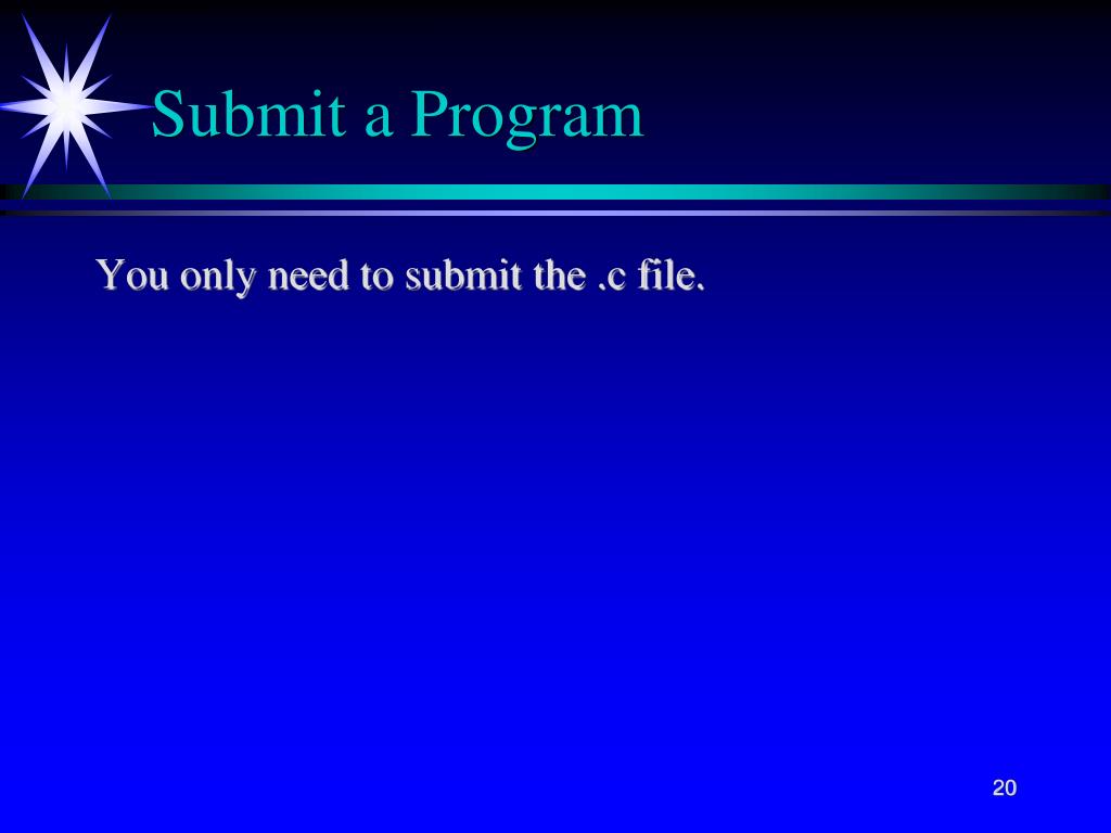 Enter Code into Your File • Enter a standard C program into the .c file.