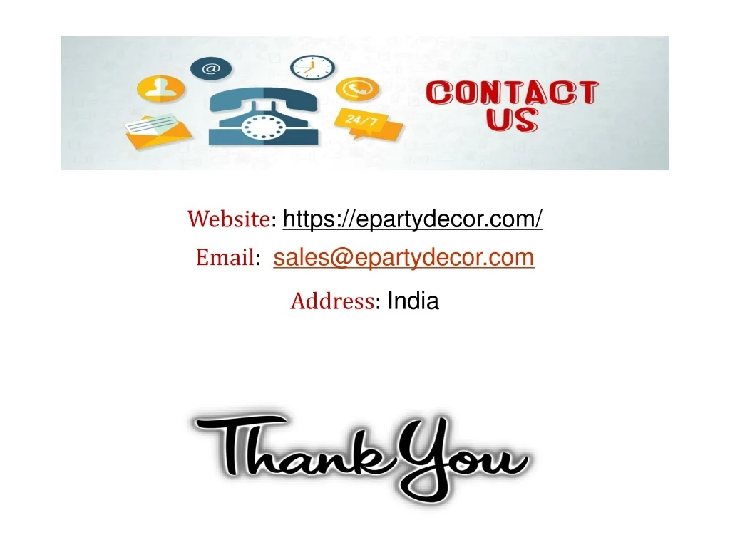 Website: https://epartydecor.com/ Email: sales@epartydecor.com Address: India