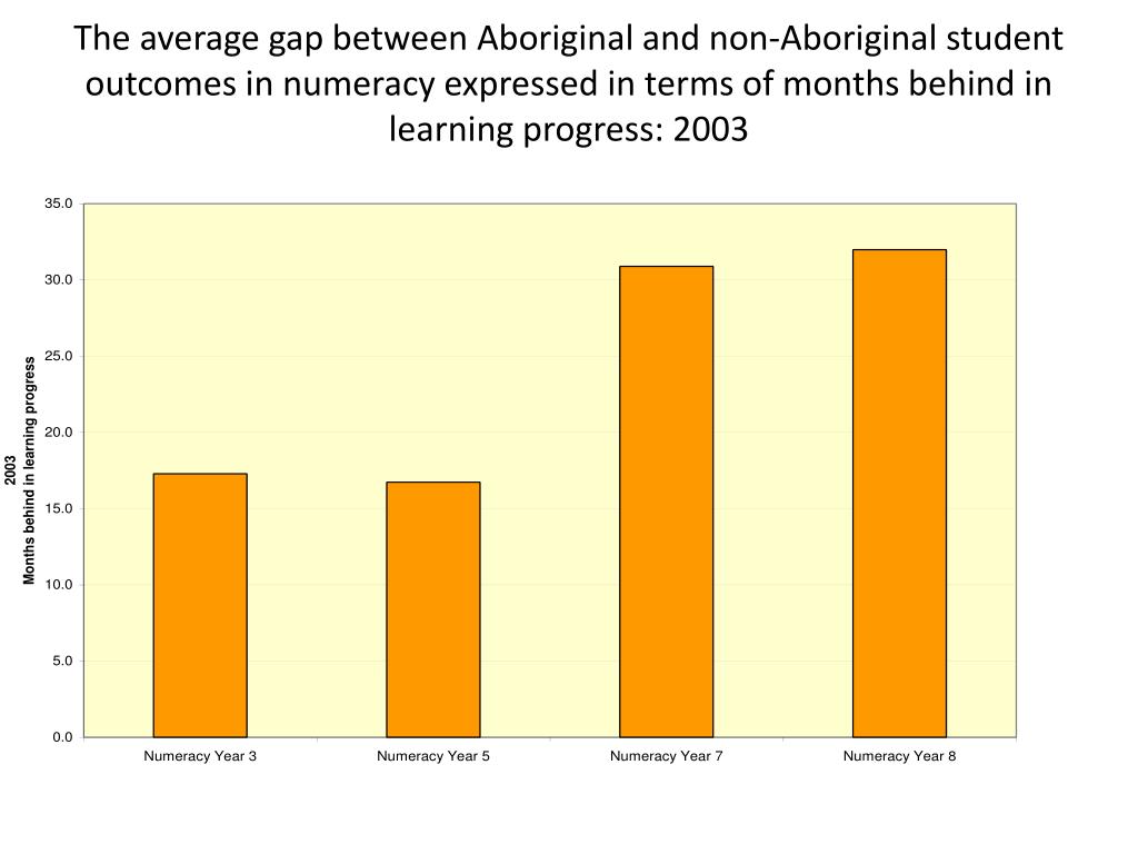 The average gap between Aboriginal and non-Aboriginal student outcomes in numeracy expressed in terms of months behind in learning progress: 2003
