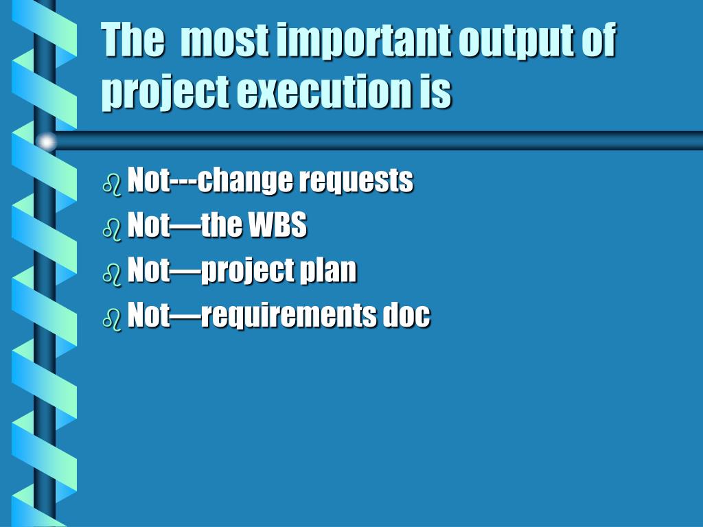The most important output of project execution is • Not---change requests • Not—the WBS • Not—project plan • Not—requirements doc