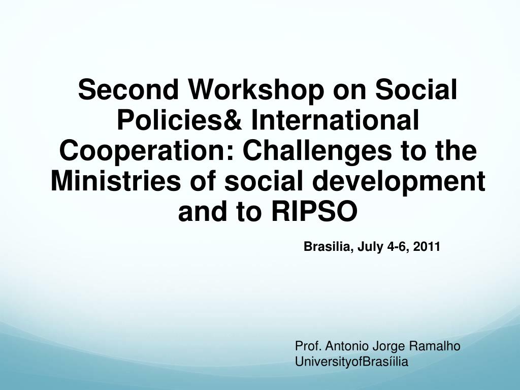 Second Workshop on Social Policies& International Cooperation: Challenges to the Ministries of social development and to RIPSO Brasilia, July 4-6, 2011 Prof. Antonio Jorge Ramalho UniversityofBrasíilia