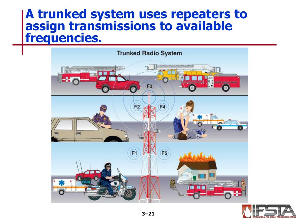 A trunked system uses repeaters to assign transmissions to available frequencies.