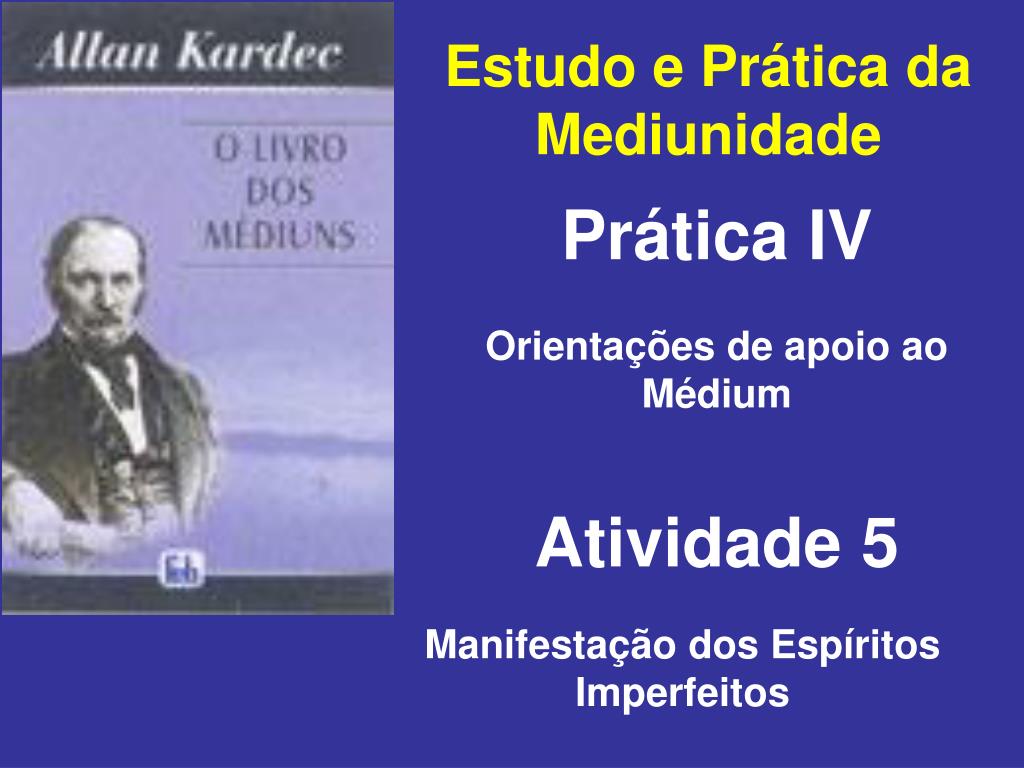 Estudo e Prática da Mediunidade Prática IV Orientações de apoio ao Médium Atividade 5 Manifestação dos Espíritos Imperfeitos