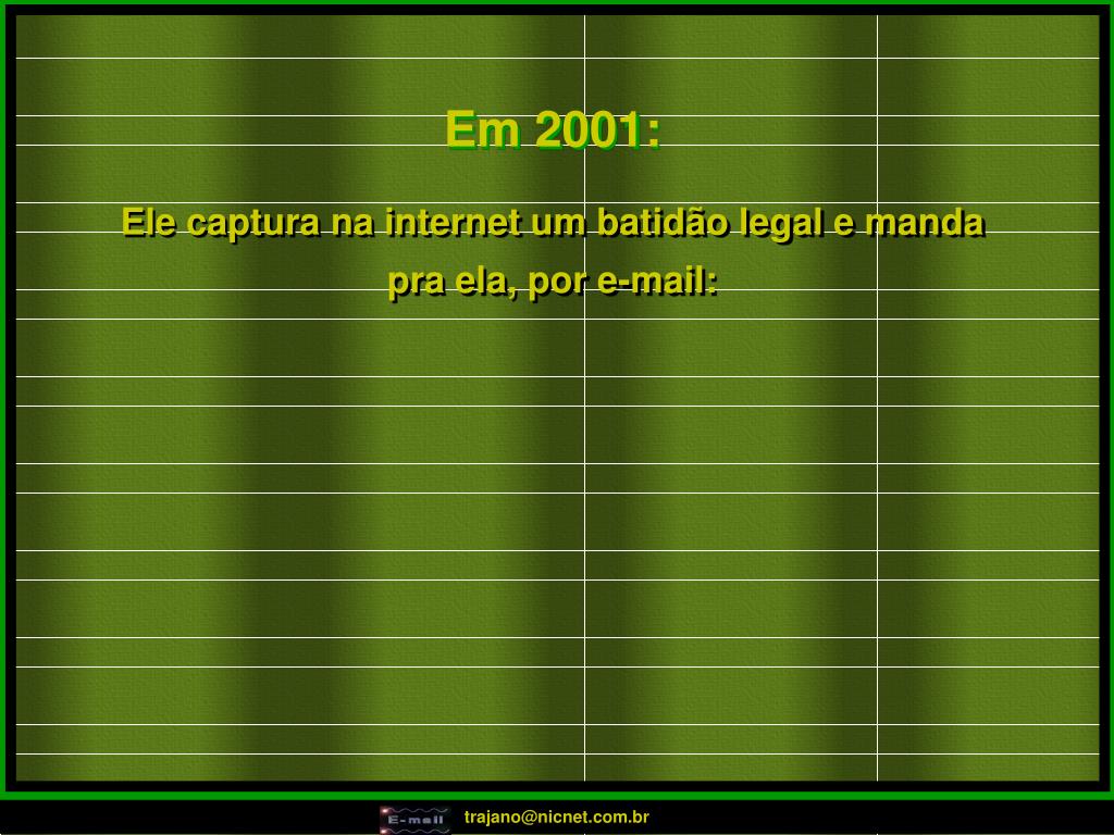 Em 2001: Ele captura na internet um batidão legal e manda pra ela, por e-mail: