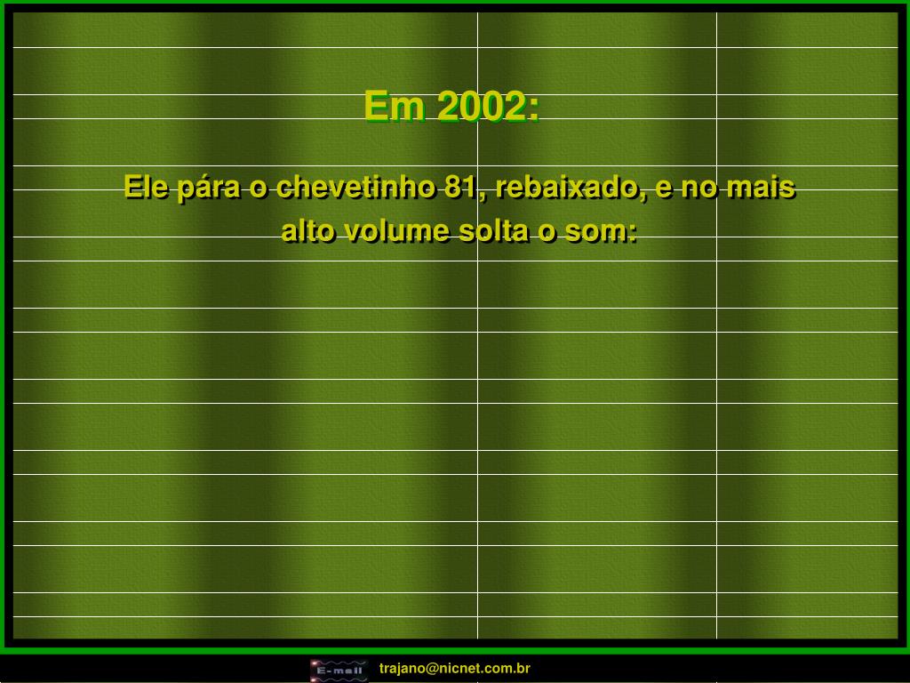 Em 2002: Ele pára o chevetinho 81, rebaixado, e no mais alto volume solta o som: