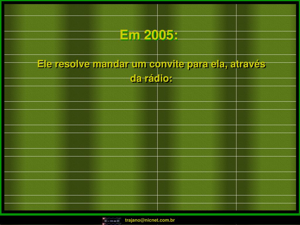 Em 2005: Ele resolve mandar um convite para ela, através da rádio: