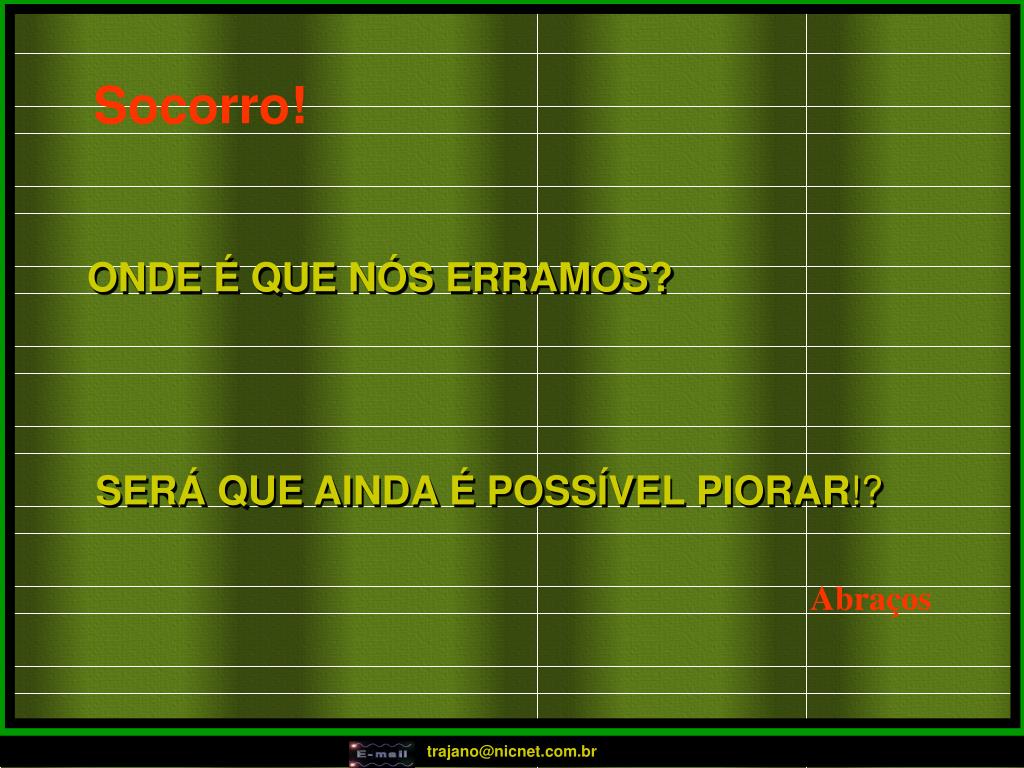 Socorro! ONDE É QUE NÓS ERRAMOS? SERÁ QUE AINDA É POSSÍVEL PIORAR!? Abraços
