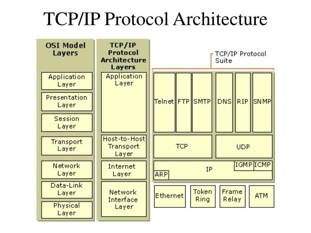 TCP/IP • TCP/IP is a result of protocol research and development conducted on the experimental packet-switched network, ARPANET, funded by the Defense Advanced Research Projects Agency (DARPA), and generally referred to as the TCP/IP suite. • This protocol suite consists of a large collection of protocols that have been issued as Internet standards. • There is no official TCP/IP protocol model as there is in the case of OSI.