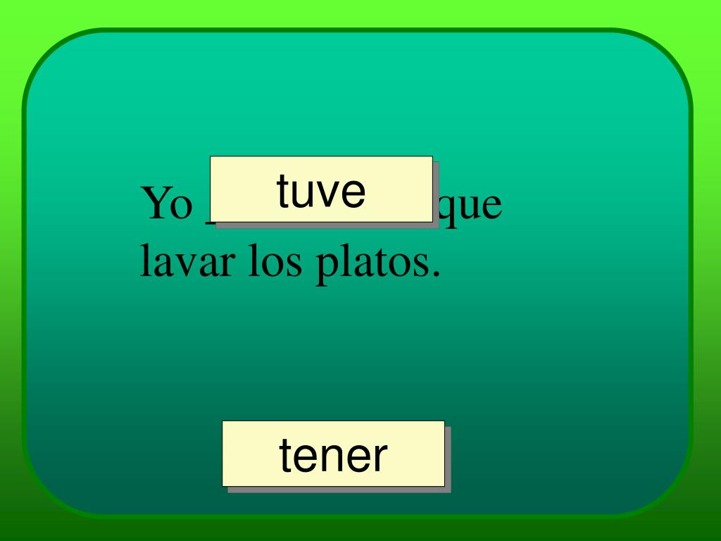 tuvieron Mis amigos ___________ que poner los cubiertos en el lavaplatos. tener
