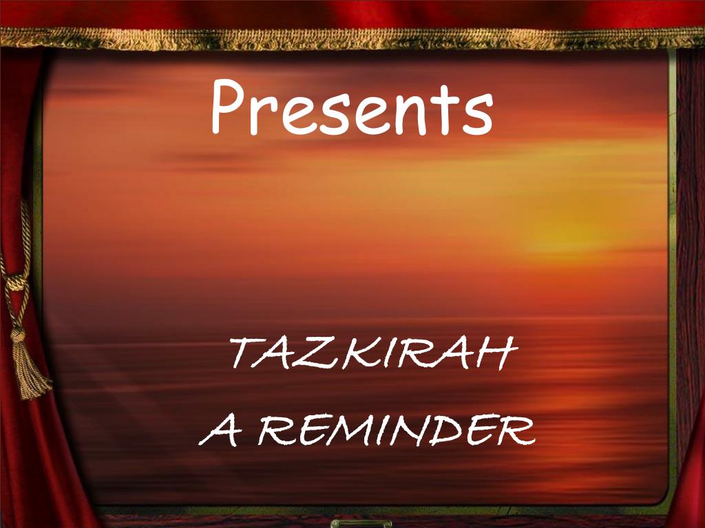 Presents. Tazkirah A Reminder. Sponsorship Opportunity on. Concept – Tazkirah, A Reminder. Tazkirah is a unique sehar time show, Based on Ramadan blessings, fastings, Holy Quran translation, Duas, stories of Prophets & shabahs and much more to learn. Show details. Show Name: Tazkirah