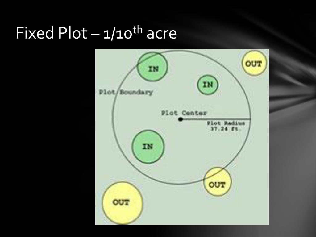 Fixed Area Plot Sampling Plot Cruising Plot cruise planning: 160 acre tract 10% cruise (sample) 1/5 acre plots Given 1. Area to be sampled: