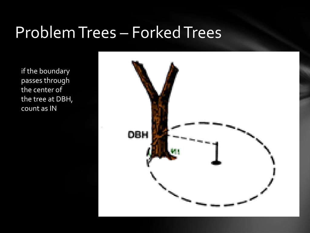 Problem Trees – Forked Trees if the boundary passes through the center of the tree at DBH, count as IN