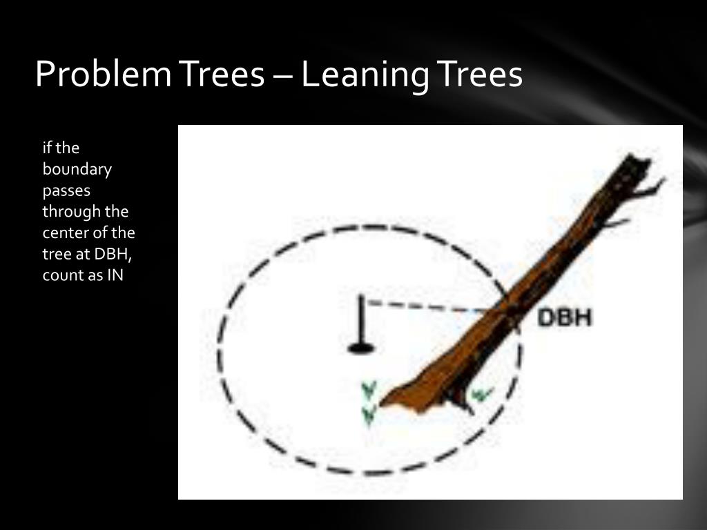 Problem Trees – Leaning Trees if the boundary passes through the center of the tree at DBH, count as IN