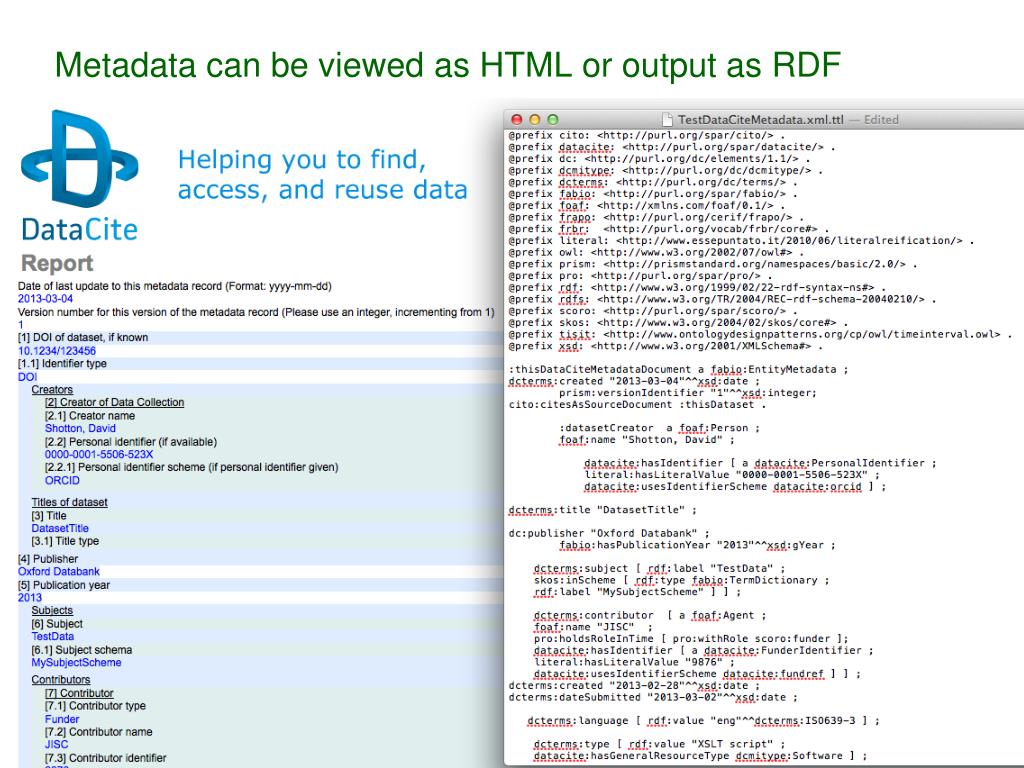 Acknowledgements • Graham Klyne and BhavanaAnandahave been primarily responsible for the development of DataStage, with Katherine Fletcher as our invaluable project manager • Tanya Gray created the DataCite metadata input form • Richard Jones of Cottage Labs, working with us and with the DataBank developerAnushaRanganathanat the Bodleian Libraries, implemented the SWORD2 protocol to encode DataStage submissions to DataBank • The JISC funded the DataFlow Project that lead to the development of DataStage and improvements to DataBank • I am grateful to them all