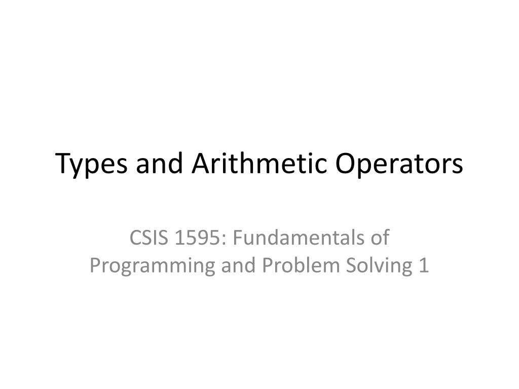 Types and Arithmetic Operators CSIS 1595: Fundamentals of Programming and Problem Solving 1