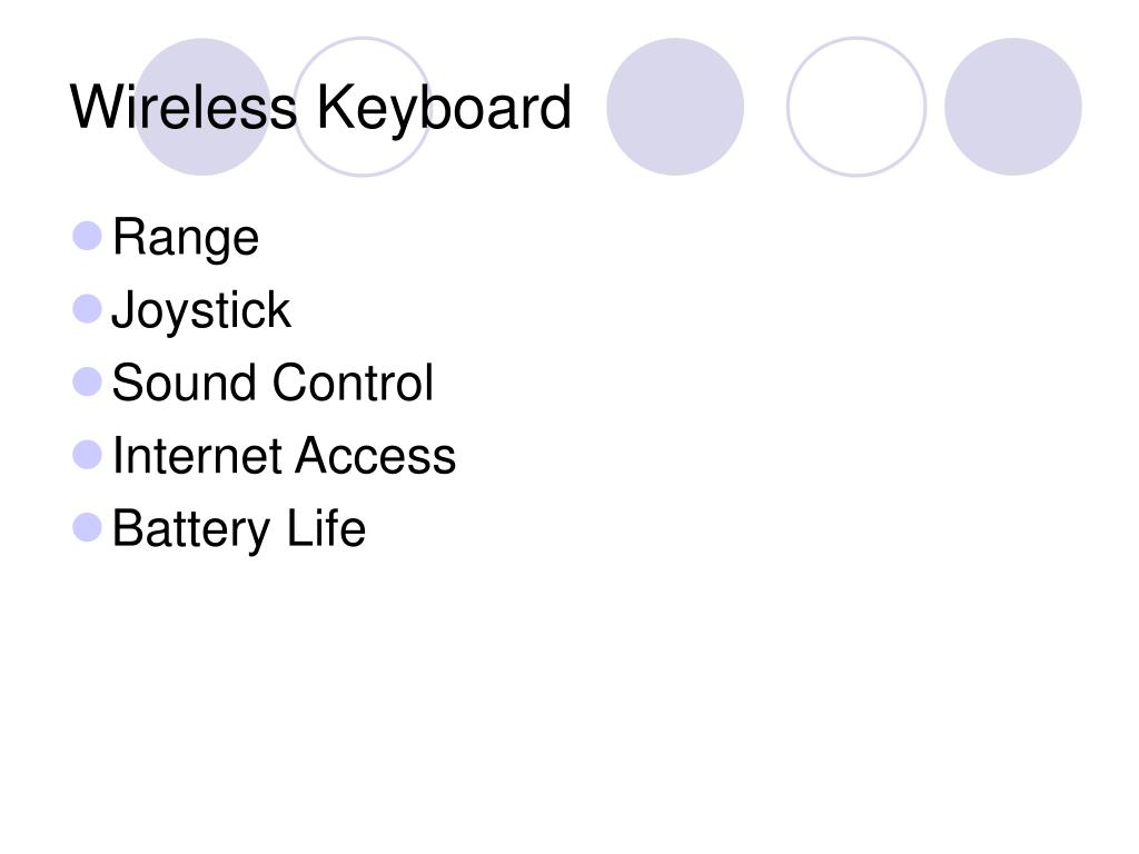 Wireless Keyboard • Range • Joystick • Sound Control • Internet Access • Battery Life