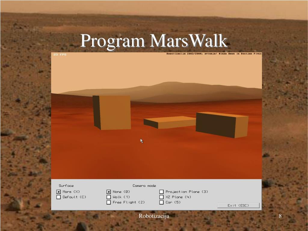 Hoja in gledanje v 3D • Novejše 3D igre • Pomembna smer gledanja • Premik naprej-nazaj: pogled gor-dol • Premik levo-desno: zasuk okoli navpične osi • Hoja s pomočjo gumbov Robotizacija