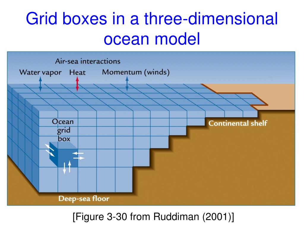 Grid boxes in a three-dimensional ocean model [Figure 3-30 from Ruddiman (2001)]