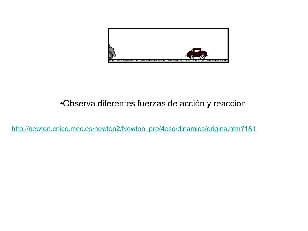 Observa diferentes fuerzas de acción y reacción http://newton.cnice.mec.es/newton2/Newton_pre/4eso/dinamica/origina.htm?1&1