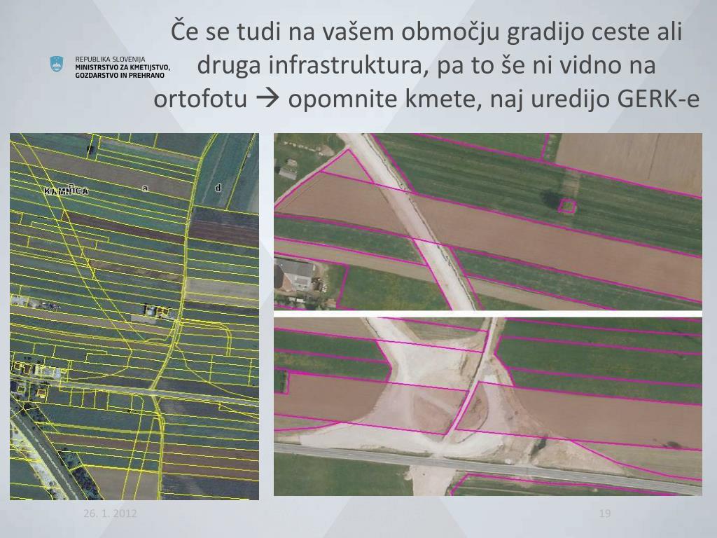 Če se tudi na vašem območju gradijo ceste ali druga infrastruktura, pa to še ni vidno na ortofotu opomnite kmete, naj uredijo GERK-e