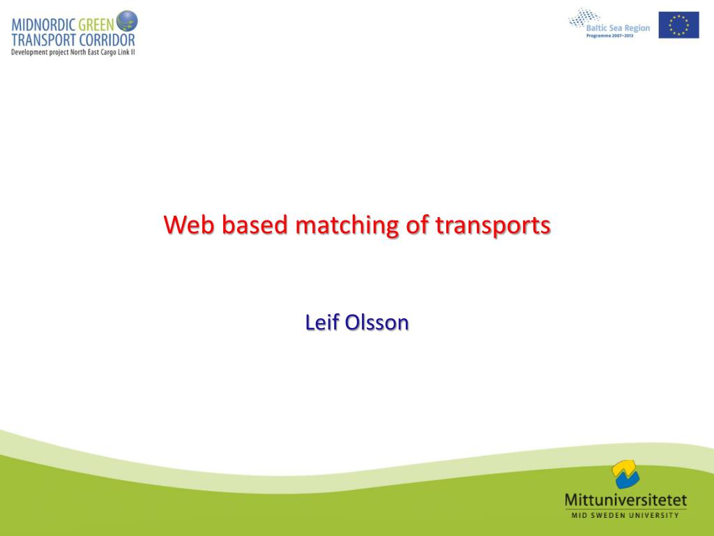 Existing systems, commercial examples, Sweden Cost and time considered in these systems No emissions considered in these systems DHL Delego Etc. Systems under development, an example LogIt D2D – Interbaltic/Transbaltic http://www.logit-systems.com