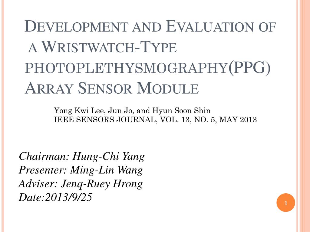 Development and Evaluation of a Wristwatch-Type photoplethysmography ( PPG) Array Sensor Module. Chairman: Hung-Chi Yang Presenter: Ming-Lin Wang Adviser: Jenq-Ruey Hrong Date:2013/9/25. Yong Kwi Lee, Jun Jo, and Hyun Soon Shin IEEE SENSORS JOURNAL, VOL. 13, NO. 5, MAY 2013. Outline.