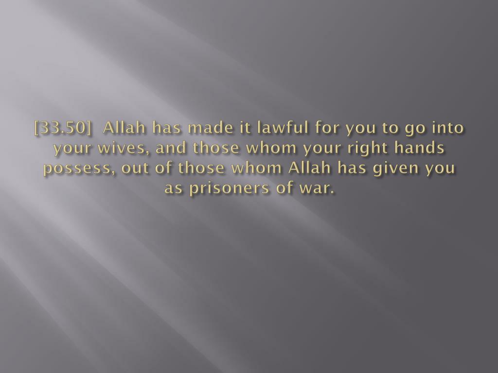 [33.50] Allah has made it lawful for you to go intoyour wives, and those whom your right hands possess, out of those whom Allah has given you as prisoners of war.