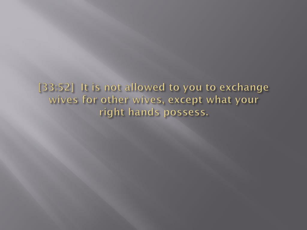 [33:52] It is not allowed to you to exchangewives for other wives, except what yourright hands possess.