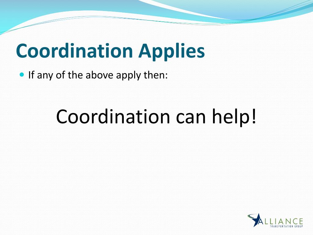 Coordination Applies • If any of the above apply then: Coordination can help!