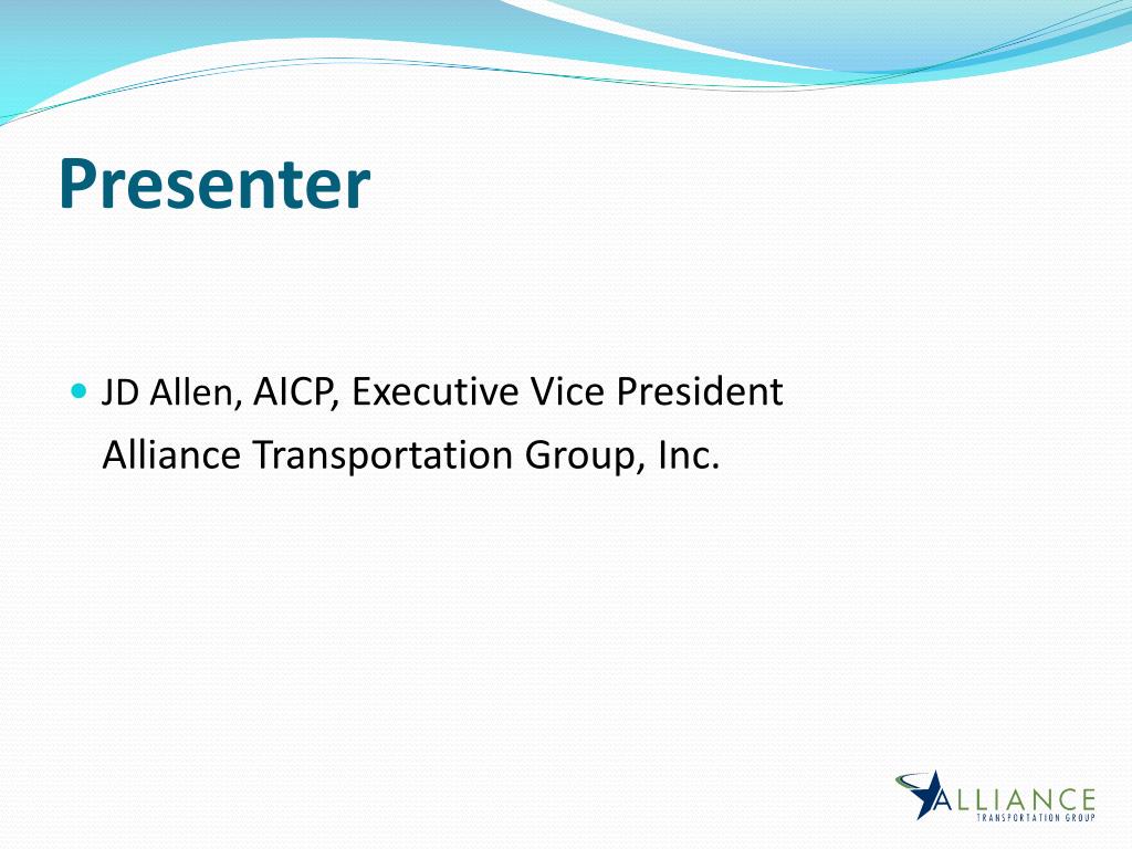 Presenter • JD Allen, AICP, Executive Vice President Alliance Transportation Group, Inc.