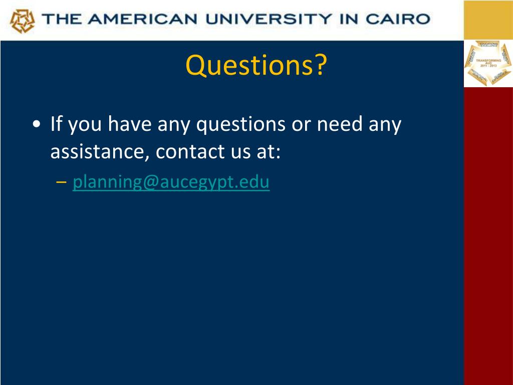 Questions? • If you have any questions or need any assistance, contact us at: • planning@aucegypt.edu