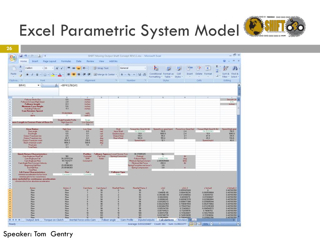 Gear Ratio Low Gear (1:1) High Gear (3.5:1) Speaker: Tom Gentry