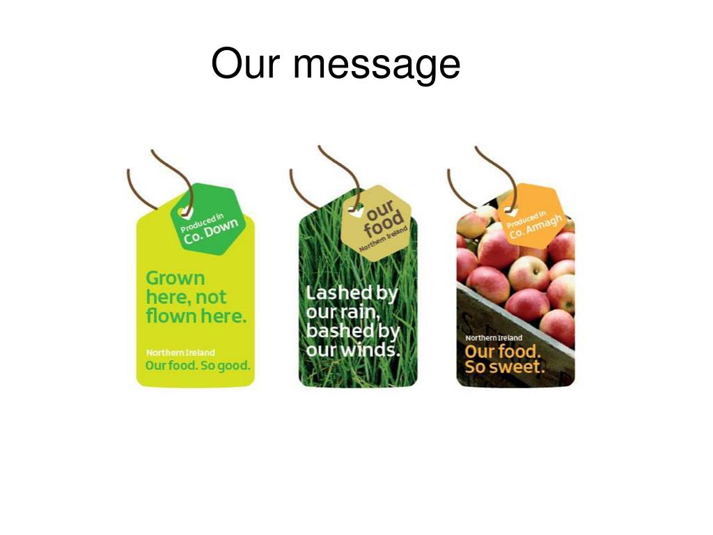 Media • First point of contact for food news • FoodNI and Flavour Magazine • Web site 80k visitors per year • Twitter 1200 followers