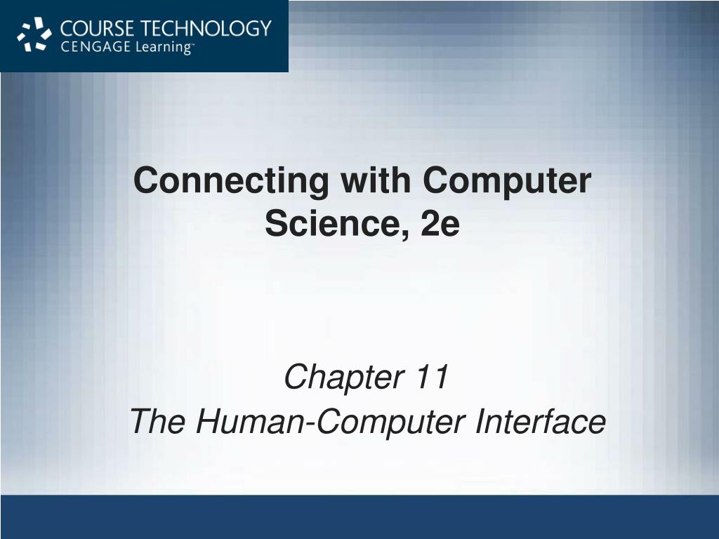 Connecting with Computer Science, 2e. Chapter 11 The Human-Computer Interface. Objectives. In this chapter you will: Learn the origins of human-computer interface development Learn about human interaction technologies Learn the foundations of human interface design