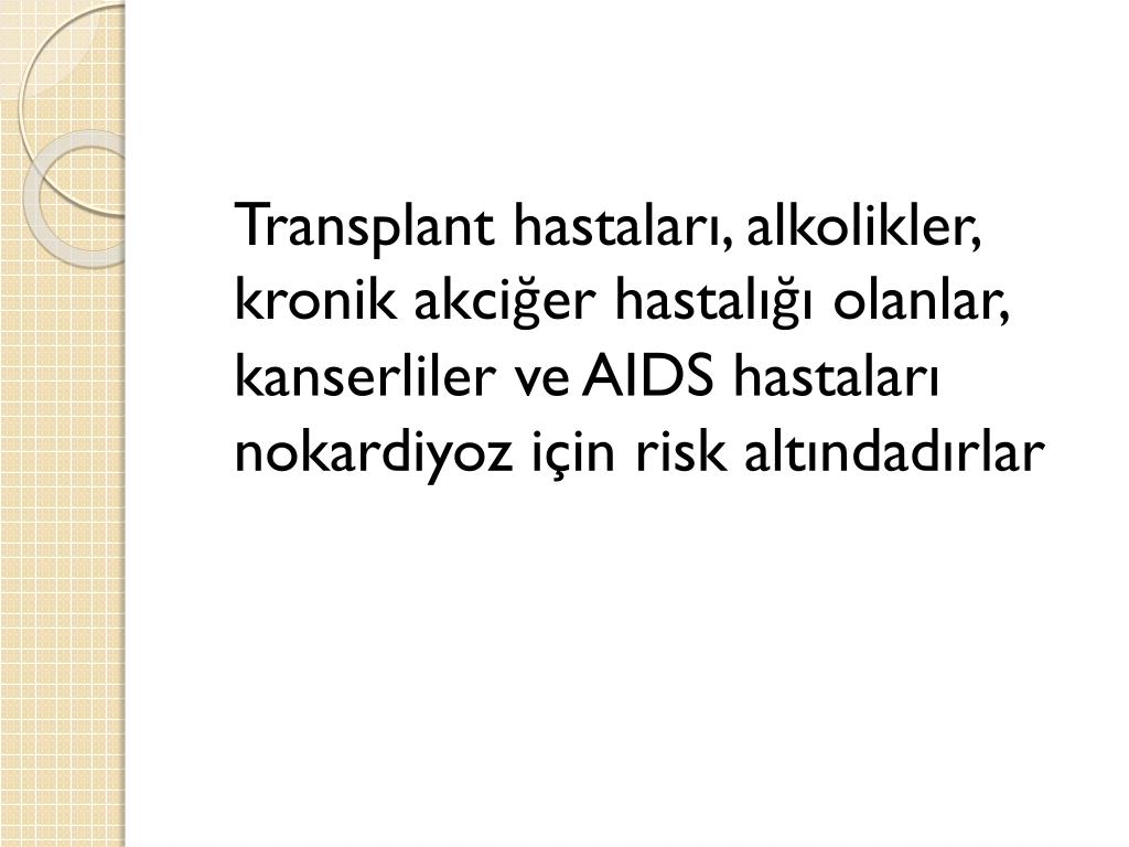 Transplant hastaları, alkolikler, kronik akciğer hastalığı olanlar, kanserliler ve AIDS hastaları nokardiyoz için risk altındadırlar
