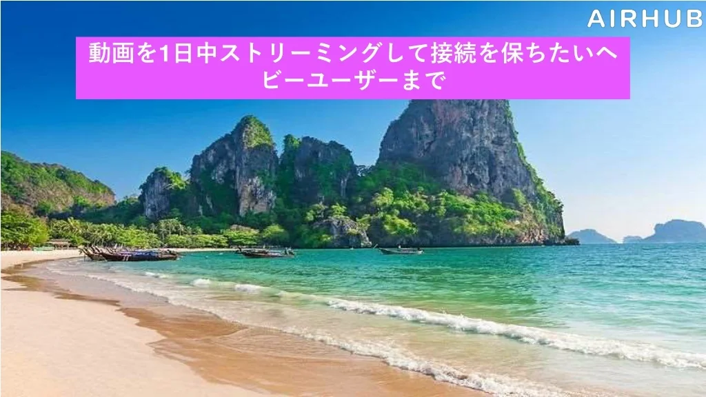 動画を1日中ストリーミングして接続を保ちたいヘビーユーザーまで、AirHubが最動画を1日中ストリーミングして接続を保ちたいヘビーユーザーまで、AirHubが最 適な選択肢です。 • 7日間2GBプラン: ¥467.87 - 短い旅行にぴったり。1週間で2GBのデータがあれば、 地図やソーシャルネットワーキング、軽いブラウジングが可能です。 • 30日間3GBプラン: ¥731.05 - 1か月間滞在する方に最適で、予算を崩さずにメー ルやブラウジング、軽いソーシャルメディアの利用が可能です。 • 5日間100GBプラン: ¥877.26 (データ+音声) - データを大量に使う方におすすめの プラン。5日間で100GBのデータと音声通話が可能。デジタルノマドやリモート ワークが必要な方に最適です。 • 30日間60GBプラン: ¥1389.00 - 1か月間滞在する場合、十分なデータを確保でき ます。仕事でも遊びでも、十分なデータがあり、接続が途切れることはありませ ん。 15日間60GBプラン: ¥1389.00 - 2週間の滞在にはこのプランがおすすめ。プーケッ トのビーチを歩いたり、チェンマイの文化的な美しさを堪能する際も、大量のデー タで安心して接続を維持できます。旅行のすべてを記録し、シェアするのに最適な オプションです。
