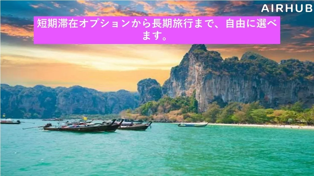 短期滞在オプションから長期旅行まで、自由に選べ短期滞在オプションから長期旅行まで、自由に選べ ます。