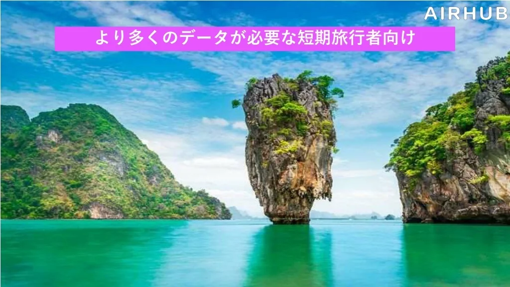 5. タイ旅行eSIM:すべてが指先一つで便利に AirHubが設計したeSIMは、冒険を求める旅行者にとって、シームレスで手間のかか らない体験を提供します。ジャングルを歩き回るバックパッカーでも、ビーチフロ ントのカフェで仕事をするデジタルノマドでも、AirHubのタイ旅行用eSIM(タイ 旅行 esim)は、常に接続状態を維持します。 6. タイ観光eSIM:ためらわずに飛び込もう 観光客にとっては、地図や旅行アプリ、現地サービスがいつでも手元にあるという 意味です。観光客向けのタイeSIM(観光客向けのタイeSIM)を利用すれば、常に 自信を持って行動でき、接続が途切れる心配はありません。バンコクで乗り物を手 配したり、プーケットで翻訳アプリを使ったりする際も、AirHubのeSIMはシームレ スなデータアクセスを提供します。 7. あなたに最適なタイeSIMデータプランはどれ? AirHubには、あらゆる旅行者に対応するプランが揃っています。地図やメールに少 しだけデータが必要なカジュアルな利用者から、