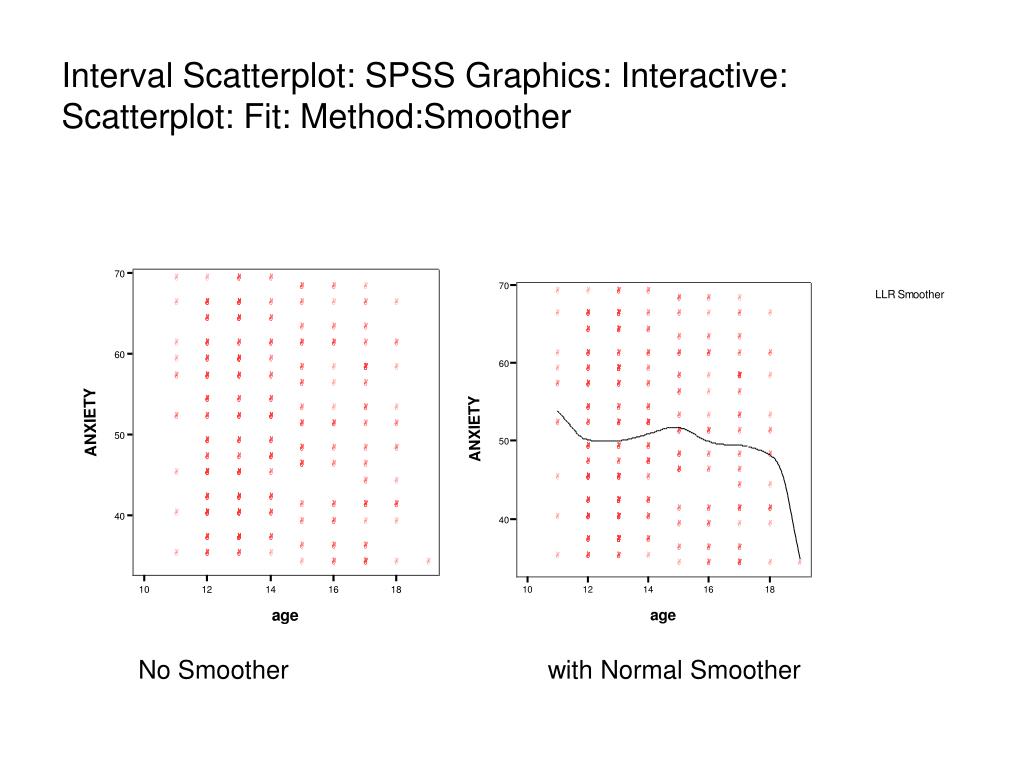 Interval Scatterplot: SPSS Graphics: Interactive: Scatterplot: Fit: Method:Smoother No Smoother with Normal Smoother